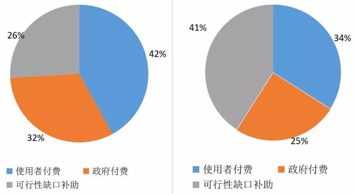 (五)政府付費類和可行性缺口補助類項目比例逐步提高。截至2016年12月末,全國入庫項目數(shù)量上,按照三種回報機制統(tǒng)計,使用者付費項目、政府付費項目、可行性缺口補助項目比例為42:32:26。從投資上,使用者付費項目、政府付費項目、可行性缺口補助項目比例為34:25:41,如圖1-4。全年政府付費項目占比32%,可行性缺口補助項目占比26%,二者比重逐步提高到占60%左右,使用者付費項目比重逐步下降到占40%左右。